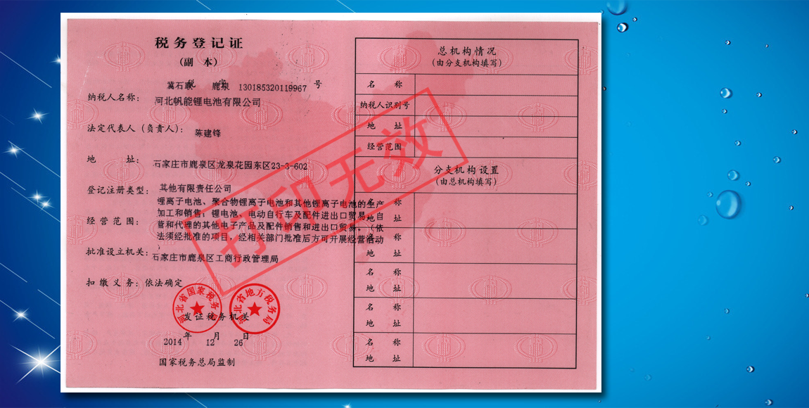 Tax registration certificate
